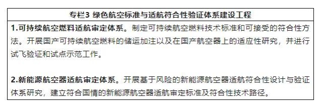 10.建设绿色航空适航审定体系。完善可持续航空燃料适航审定方法,积极推进替代燃料的适航审定。加强工业方与适航审定方协作,加快推动建立新能源航空器适航审定体系和持续适航体系。强化电动航空器等在飞行性能、结构强度、机载配套等领域初始适航审定,加速满足市场急需的新能源航空器适航取证。开展氢能航空适航审定技术预先研究,加速氢能航空发展。