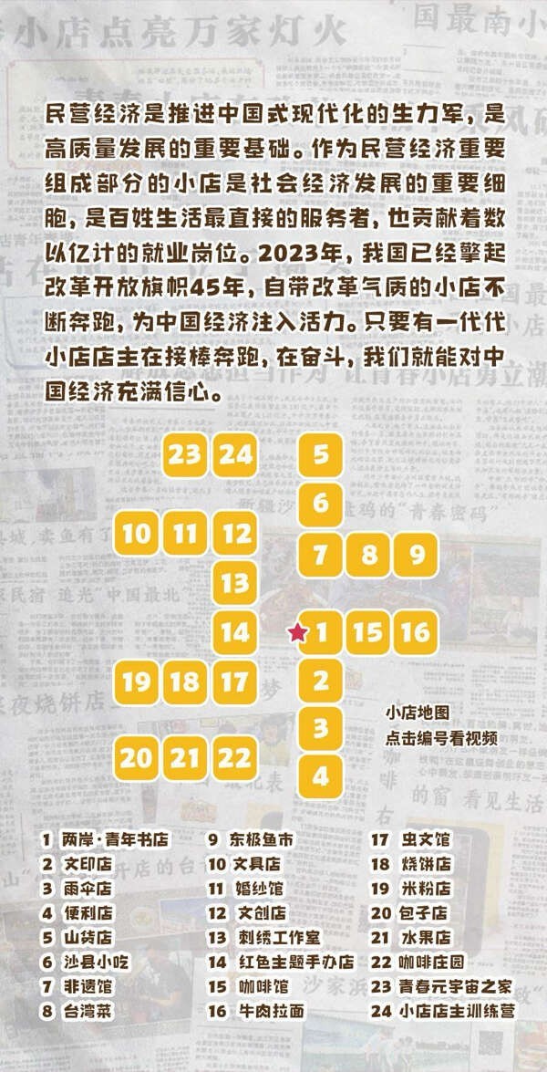 2023年是改革开放45周年,自5月起中国青年报发起"了不起的青春小店"寻访调研,派出采编调研组奔赴全国各地探访了60多个地方的青春小店,与上百家小店的创业青年深度对话,了解他们的急难愁盼,呼吁社会更多地关注这一群体。