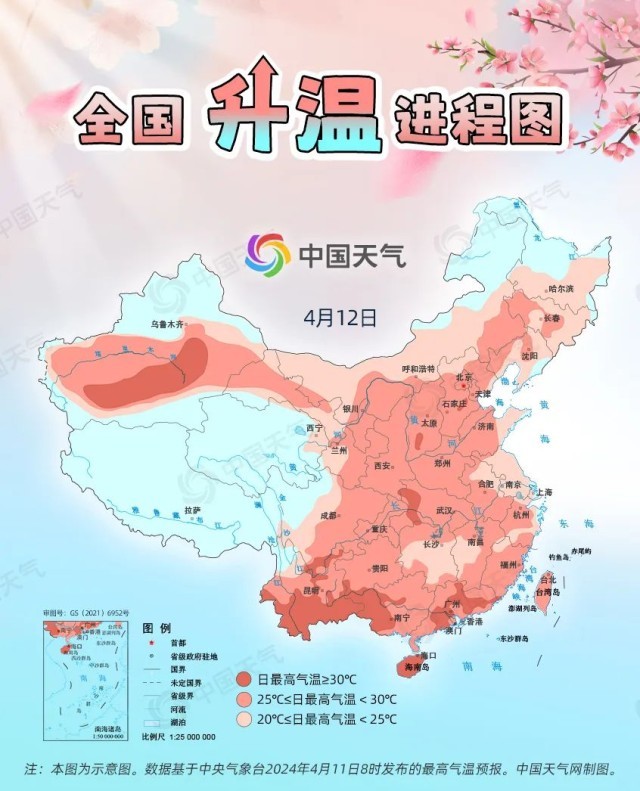 眼下,全国大部处于冷空气影响间歇期,升温是主旋律。预计今起三天(4月11日至13日),我国从北到南都将开启回暖进程,最高气温25℃以上的区域几乎覆盖整个中东部,波及20余省份,东北、西北地区气温将大面积创今年以来新高,北方不少地方还会体验到常年5月中旬才有的超前暖热。中国天气网推出全国升温进程图,看看哪些地方将冲击30℃。