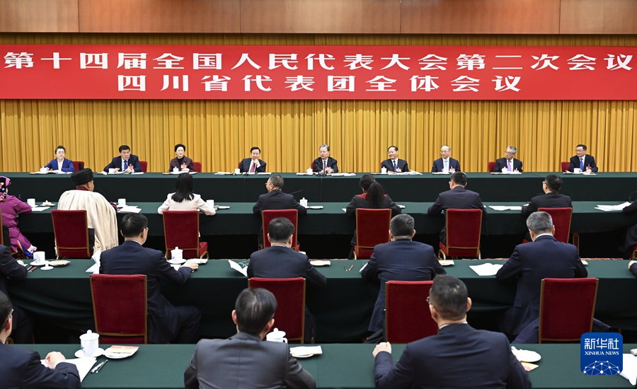 3月5日,中共中央政治局常委、全国人大常委会委员长赵乐际参加他所在的四川代表团审议。新华社记者 张领 摄