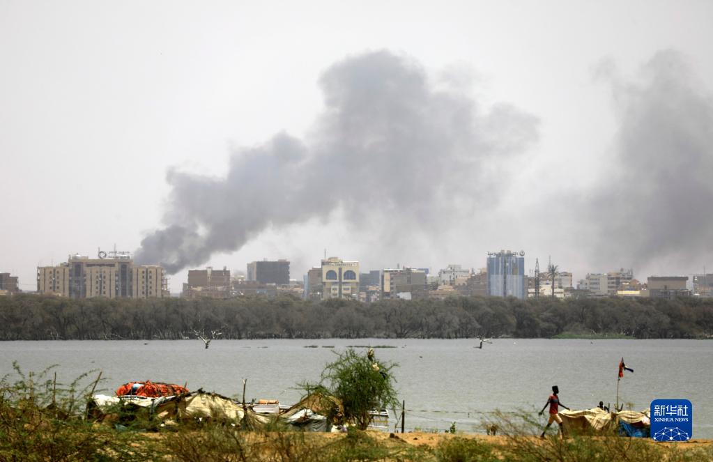 4月15日,苏丹首都喀土穆冒出浓烟。新华社发(穆罕默德·海德尔 摄)