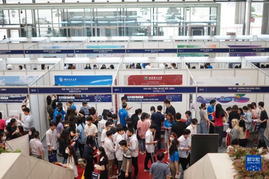 4月22日,在位于越南首都河内的国家会议中心,留学咨询者络绎不绝。新华社记者 陶军 摄