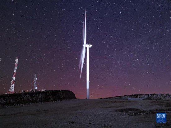 新华社记者日前驱车前往伊沃维克风电场,在一号风机组前停下,眼前景观从丘陵的柔和舒缓切换成震撼的视觉体验,只见百米风机塔筒直指蓝天,炫目矗立。塔筒上方连接轮毂叶片,凌空欲飞。