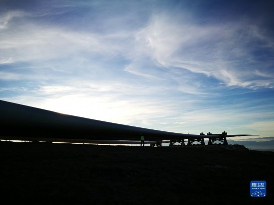 这张未标注时间的照片拍摄的是波黑伊沃维克风电场施工现场的风电叶片(手机照片)。新华社发(王驰摄)