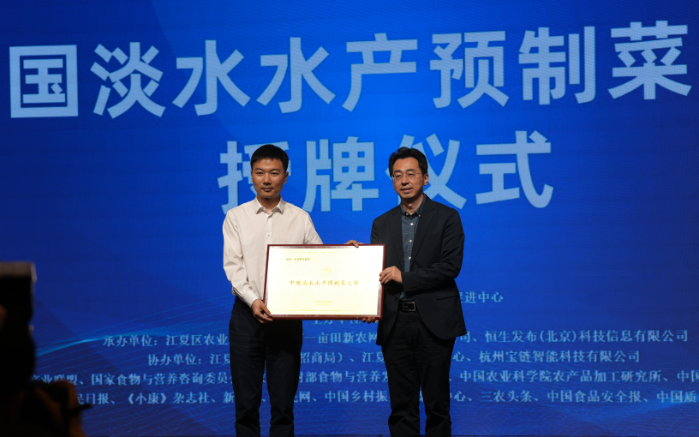 此次高峰论坛中,由中国预制菜产业联盟执行秘书长、一亩田集团副总裁彭南峰作为授牌嘉宾,武汉市江夏区区委副书记、政法委书记柳新作为代表接受中国淡水水产预制菜之都授牌。中国预制菜产业联盟研究院院长昕原、江夏区区委书记张斐共同为中国淡水水产预制菜预研究院揭牌。