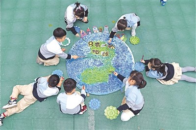 日前,浙江省台州市仙居县实验幼儿园举行“世界地球日”主题教育活动,通过手绘地球等环节引导孩子们从小树立爱护地球、人与自然和谐共生的理念。图为孩子们在“手绘地球”。