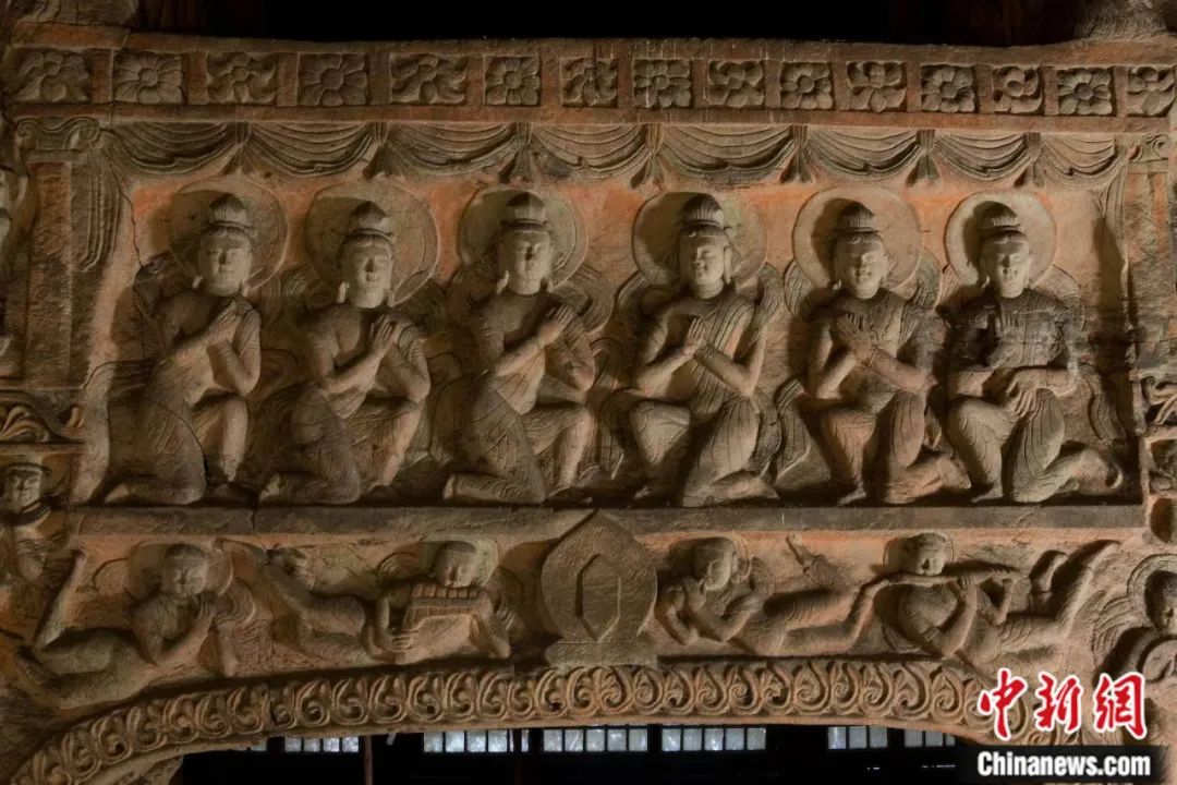 云冈石窟第12窟又名“音乐窟”,前殿上壁雕塑的数十身伎乐天人形象正在演奏琵琶、筚篥、古琴等各种中西式乐器,是中国古代最早的宫廷交响乐团。武俊杰 摄