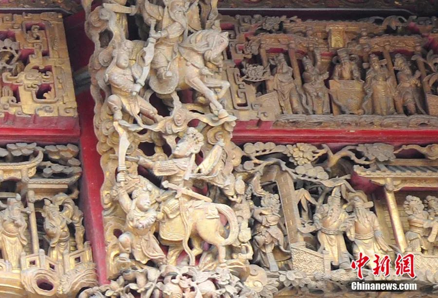 三峡祖师庙雕刻精美的木雕艺术。受访者供图