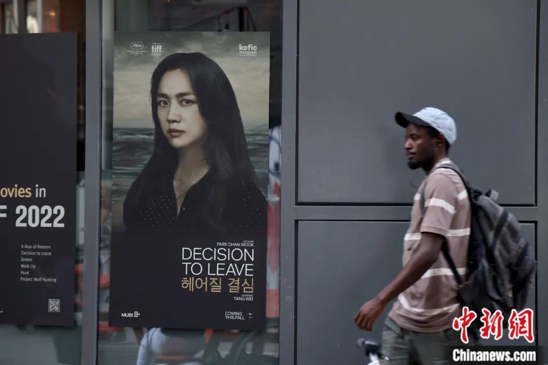 韩国影片《分手的决心》亮相第47届多伦多国际电影节,行人从主演汤唯的海报前经过。余瑞冬 摄