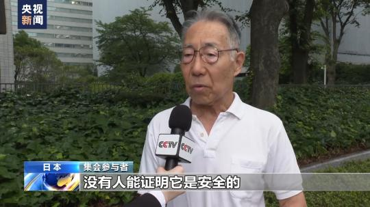 集会参与者:说是“处理水”实则是污染水,里面含有大量的放射性物质。如果真的是安全的话,那请他们用那个水洗澡,去使用它,用它做饭,去喝它,这样生活五年的话应该就清楚了。像这样,没有任何人能说它实际上是安全的,没有人能证明它是安全的。