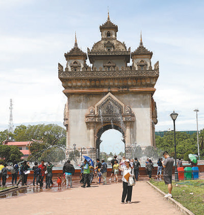老挝首都万象市中心的凯旋门吸引众多游客参观。