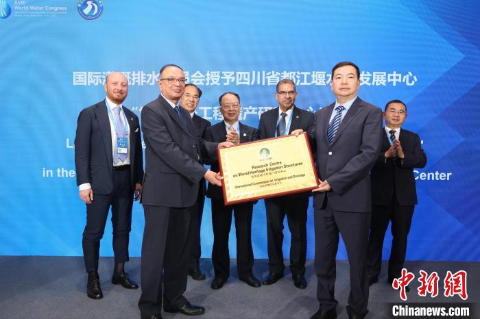 国际灌溉排水委员会授予了四川省都江堰水利发展中心“世界灌溉工程遗产研究中心”牌匾 记者陈溯 摄
