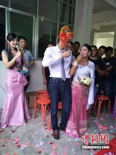 图为2017年,景迈山傣族姑娘玉摆与法国小伙威廉喜结良缘。钟欣 摄