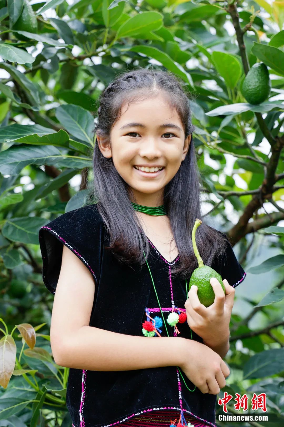 图为佤族少女与牛油果。普洱市委宣传部供图