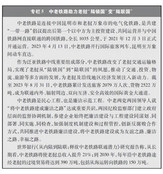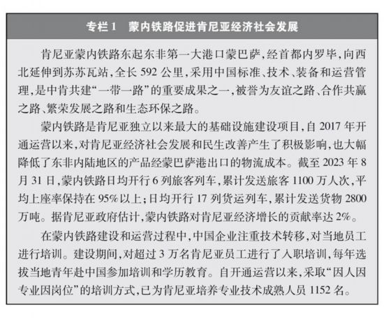 经济走廊和国际通道建设卓有成效。共建国家共同推进国际骨干通道建设,打造连接亚洲各次区域以及亚欧非之间的基础设施网络。中巴经济走廊方向,重点项目稳步推进,白沙瓦-卡拉奇高速公路(苏库尔至木尔坦段)、喀喇昆仑公路二期(赫韦利扬-塔科特段)、拉合尔轨道交通橙线项目竣工通车,萨希瓦尔、卡西姆港、塔尔、胡布等电站保持安全稳定运营,默拉直流输电项目投入商业运营,卡洛特水电站并网发电,拉沙卡伊特别经济区进入全面建设阶段。新亚欧大陆桥经济走廊方向,匈塞铁路塞尔维亚贝尔格莱德-诺维萨德段于2022年3月开通运营,匈牙利布达佩斯-克莱比奥段启动轨道铺设工作;克罗地亚佩列沙茨跨海大桥迎来通车一周年;双西公路全线贯通;黑山南北高速公路顺利建成并投入运营。中国-中南半岛经济走廊方向,中老铁路全线建成通车且运营成效良好,黄金运输通道作用日益彰显;作为中印尼共建“一带一路”的旗舰项目,时速350公里的雅万高铁开通运行;中泰铁路一期(曼谷-呵叻)签署线上工程合同,土建工程已开工11个标段(其中1个标段已完工)。中蒙俄经济走廊方向,中俄黑河公路桥、同江铁路桥通车运营,中俄东线天然气管道正式通气,中蒙俄中线铁路升级改造和发展可行性研究正式启动。中国-中亚-西亚经济走廊方向,中吉乌公路运输线路实现常态化运行,中国-中亚天然气管道运行稳定,哈萨克斯坦北哈州粮油专线与中欧班列并网运行。孟中印缅经济走廊方向,中缅原油和天然气管道建成投产,中缅铁路木姐-曼德勒铁路完成可行性研究,曼德勒-皎漂铁路启动可行性研究,中孟友谊大桥、多哈扎里至科克斯巴扎尔铁路等项目建设取得积极进展。在非洲,蒙内铁路、亚吉铁路等先后通车运营,成为拉动东非乃至整个非洲国家纵深发展的重要通道。