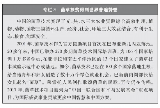 增强共建国家减贫能力。发展中国家仍面临粮食问题。中国积极参与全球粮农治理,与相关国家发布《共同推进“一带一路”建设农业合作的愿景与行动》,与近90个共建国家和国际组织签署了100余份农渔业合作文件,与共建国家农产品贸易额达1394亿美元,向70多个国家和地区派出2000多名农业专家和技术人员,向多个国家推广示范菌草、杂交水稻等1500多项农业技术,帮助亚洲、非洲、南太平洋、拉美和加勒比等地区推进乡村减贫,促进共建国家现代农业发展和农民增收。促进就业是减贫的重要途径。在共建“一带一路”过程中,中国与相关国家积极推进产业园区建设,引导企业通过开展高水平产业合作为当地居民创造就业岗位,实现了“一人就业,全家脱贫”。麦肯锡公司的研究报告显示,中国企业在非洲雇员本地化率达89%,有效带动了本地人口就业。世界银行预测,到2030年,共建“一带一路”相关投资有望使共建国家760万人摆脱极端贫困、3200万人摆脱中度贫困。