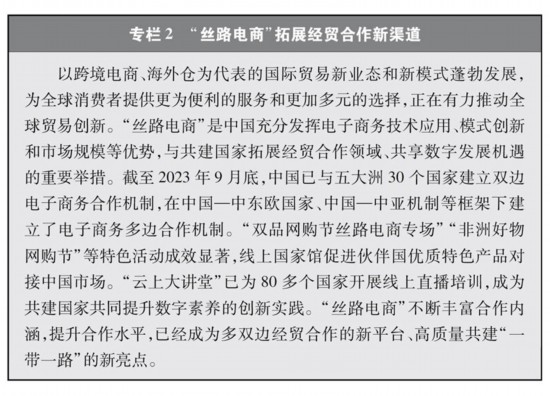 促进全球贸易发展。共建“一带一路”有计划、有步骤地推进交通、信息等基础设施建设和贸易投资自由化便利化,消除了共建国家内部、跨国和区域间的交通运输瓶颈及贸易投资合作障碍,极大提升了对外贸易、跨境物流的便捷度和国内国际合作效率,构建起全方位、多层次、复合型的贸易畅通网络,推动建立全球贸易新格局,对全球贸易发展发挥了重要促进作用。同时,共建“一带一路”增强了参与国家和地区对全球优质资本的吸引力,提升了其在全球跨境直接投资中的地位。其中,2022年东南亚跨境直接投资流入额占全球比重达到17.2%,较2013年上升了9个百分点;流入哈萨克斯坦的外商直接投资规模同比增速高达83%,为历史最高水平。世界银行《“一带一路”经济学:交通走廊的机遇与风险》研究报告显示,共建“一带一路”倡议提出之前,六大经济走廊的贸易低于其潜力的30%,外国直接投资低于其潜力的70%;共建“一带一路”实施以来,仅通过基础设施建设,就可使全球贸易成本降低1.8%,使中国-中亚-西亚经济走廊上的贸易成本降低10%,为全球贸易便利化和经济增长作出重要贡献;将使参与国贸易增长2.8%-9.7%、全球贸易增长1.7%-6.2%、全球收入增加0.7%-2.9%。