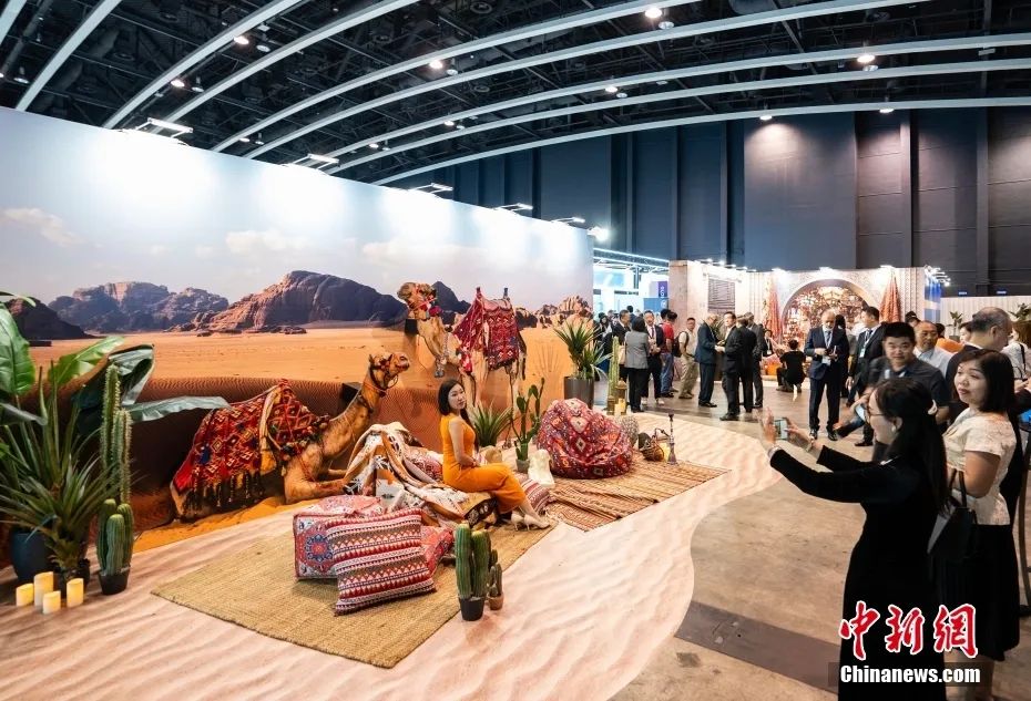2023年9月,第八届“一带一路”高峰论坛在香港举行,与会者在宣传展板前留影。