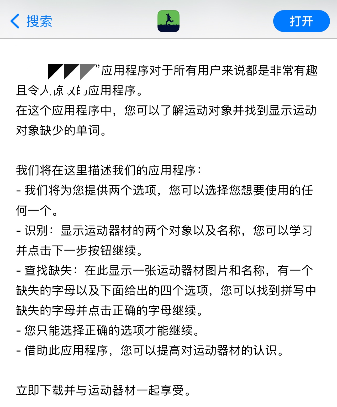 这些涉黄APP陆续被曝光、下架后,中新网发现,一名网友在社交平台提到一款伪装成工具类APP的软件,该软件在苹果应用商店依然可以搜索到。应用简介界面显示,该软件年龄限制分级为4岁以上,并提示“借助此应用程序,您可以提高对运动器材的认识”。而进入这款APP后,页面上充斥着大量黄色视频,并以视频链接为其他黄色软件引流,其实际内容,与苹果应用商店所介绍的完全不同。