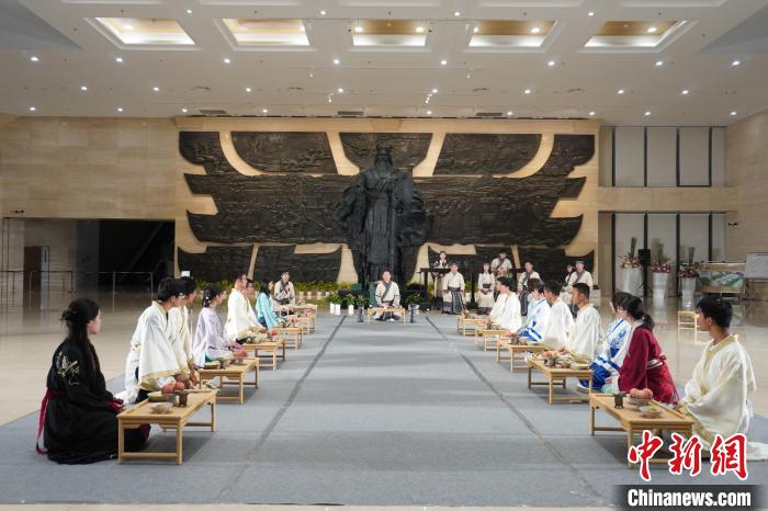 图为研学团队在郑州商都遗址博物院体验商周晚宴。(资料图)韩章云摄