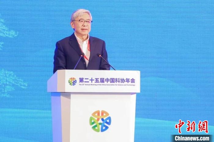 第二十五届中国科协年会通用人工智能产业创新发展论坛上,中国工程院院士、中国自动化学会理事长、西安交通大学教授郑南宁致辞。中国科协 供图