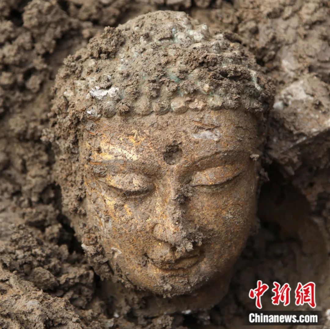 邺城遗址东郭区佛教造像埋藏坑发掘出的佛首。邺城考古队供图