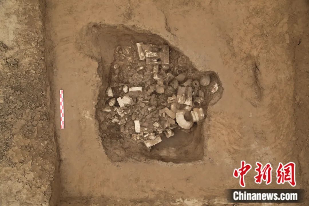 邺城遗址东郭区佛教造像埋藏坑遗迹发掘现场。邺城考古队供图