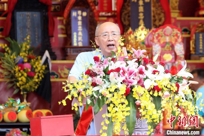 10月22日,台北客家义民嘉年华主祭大典在台北举办。世界客属总会荣誉总会长吴伯雄致辞。 中新社记者 陈小愿 摄