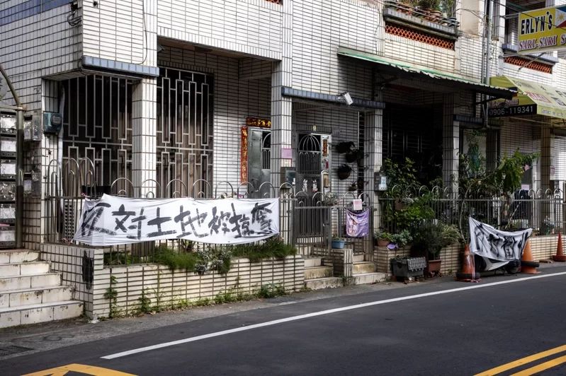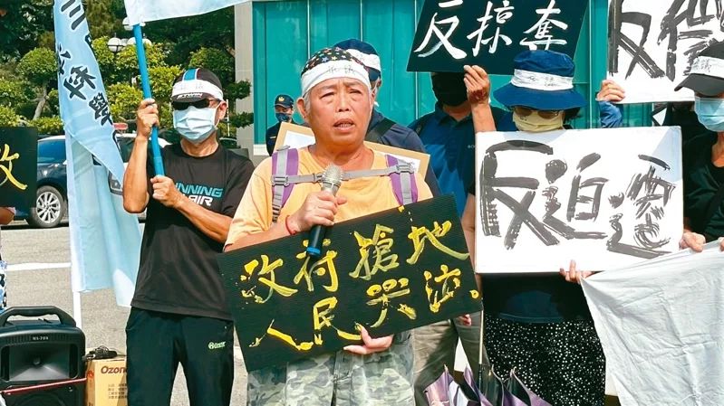 图为遭征收区域的桃园居民不满被征地,拉起布条抗争。图自《联合报》