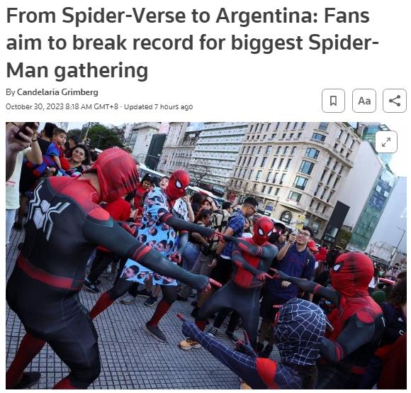 据报道,阿根廷网红尤基·丁恩(Uki Deane)通过社交媒体筹办了这次活动,希望能一举打破马来西亚2023年6月创下的685名“蜘蛛侠”齐聚的纪录。