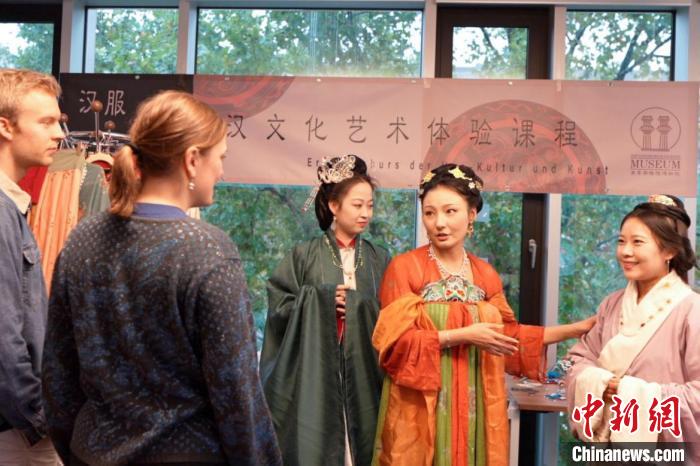 中新网柏林10月28日电 由汉景帝阳陵博物院主办的“汉服之美·汉文化艺术体验课程”活动近日在柏林的汉文化艺术交流中心讲堂(体验馆)举办,数十名来自德国柏林的年轻汉文化爱好者与中国讲师共同参与了活动。