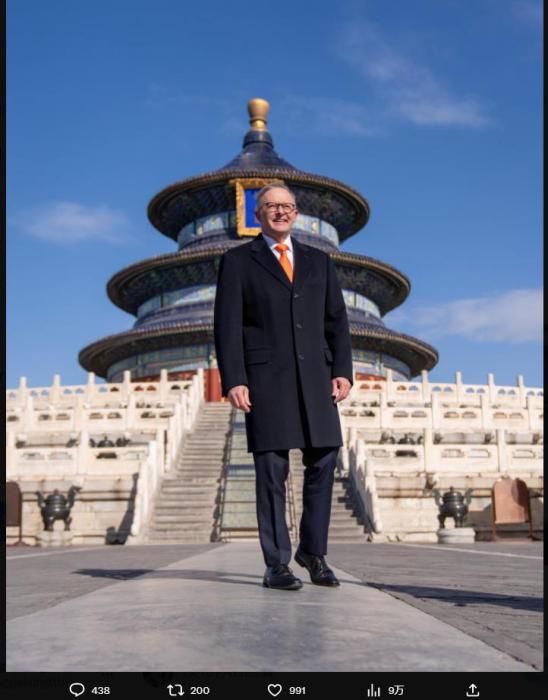 澳总理阿尔巴尼斯晒参观天坛照 点评澳中关系