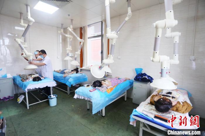 2021年8月19日,甘肃中医药大学附属医院郑氏针灸科室内,医师为患者做敦煌特色灸。(资料图)高展 摄