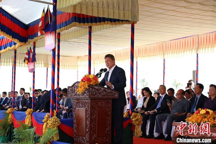 图为柬埔寨副首相孙占托在庆典仪式上致辞。 中新社发 黎海月 摄