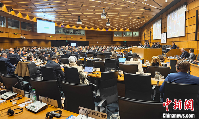 11月22日,中国常驻国际原子能机构代表李松率团出席在维也纳召开的国际原子能机构11月理事会,就巴以冲突和以色列核问题发言。图为会议现场。 中新社发 中国常驻维也纳代表团供图