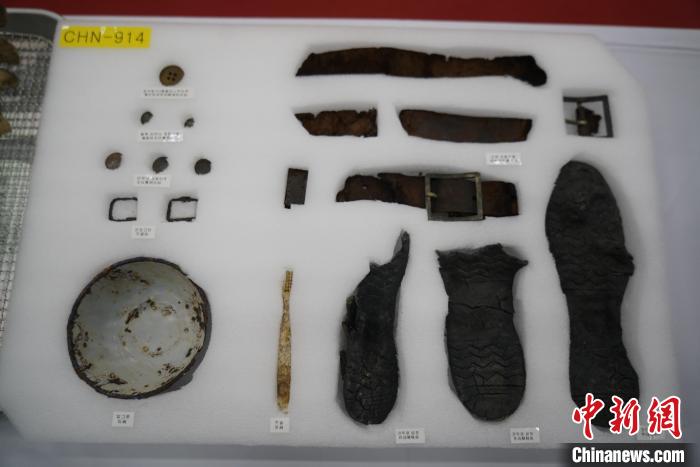 当地时间11月22日上午,第十批在韩中国人民志愿军烈士遗骸装殓仪式在韩国举行。图为装殓仪式现场拍摄的部分志愿军烈士遗物。中新社记者 刘旭 摄