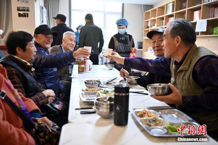 图为11月27日,甘肃省兰州市建兰路街道吴家园社区养老服务中心内,“老中青”组成“饭搭子”在社区食堂就餐。 中新社记者 九美旦增 摄