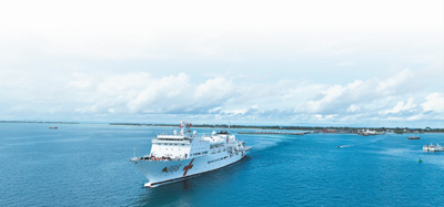 2023年7月22日,中国海军“和平方舟”号医院船结束对基里巴斯的访问驶离塔拉瓦港。