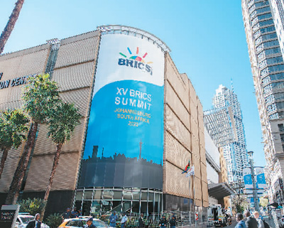 2023年8月23日,金砖国家领导人第十五次会晤在南非约翰内斯堡举行。图为会场外景。