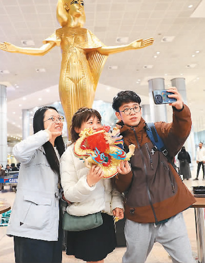 埃及是中国游客春节假期出境游的主要目的地之一。2月10日,开罗国际机场举办“欢迎中国游客来埃及过大年”仪式,迎接当天抵达的300余名中国游客。“金字塔、狮身人面像、埃及博物馆、卡尔纳克神庙……今年来埃及的中国游客尤其多,几乎每个景点都能看到中国游客的身影。”埃及导游哈迪布告诉记者,春节是他最忙碌的时期。