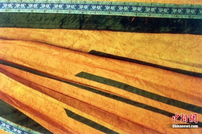 明清时期的“朱红地缠枝纹暗花纱马面裙”局部。毛建军 摄