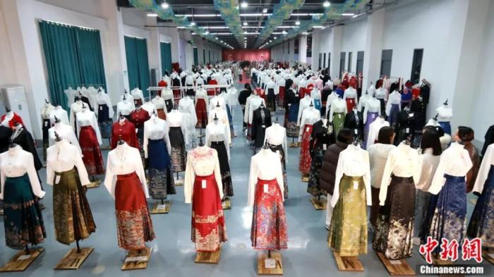 如今,随着“新中式穿搭”走红,汉服穿搭、马面裙穿搭逐渐融入日常生活中。因为价格低、款式多,曹县汉服成为许多年轻人的选择,被称为“年轻人的第一件汉服”,山东也一跃成为“淘宝汉服爆款来源第一大省”。