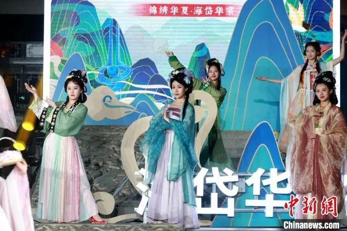 第五届“中国华服日”山东分会场“锦绣华夏·海岱华裳”在大明湖超然楼举办。图为华服走秀。梁犇 摄