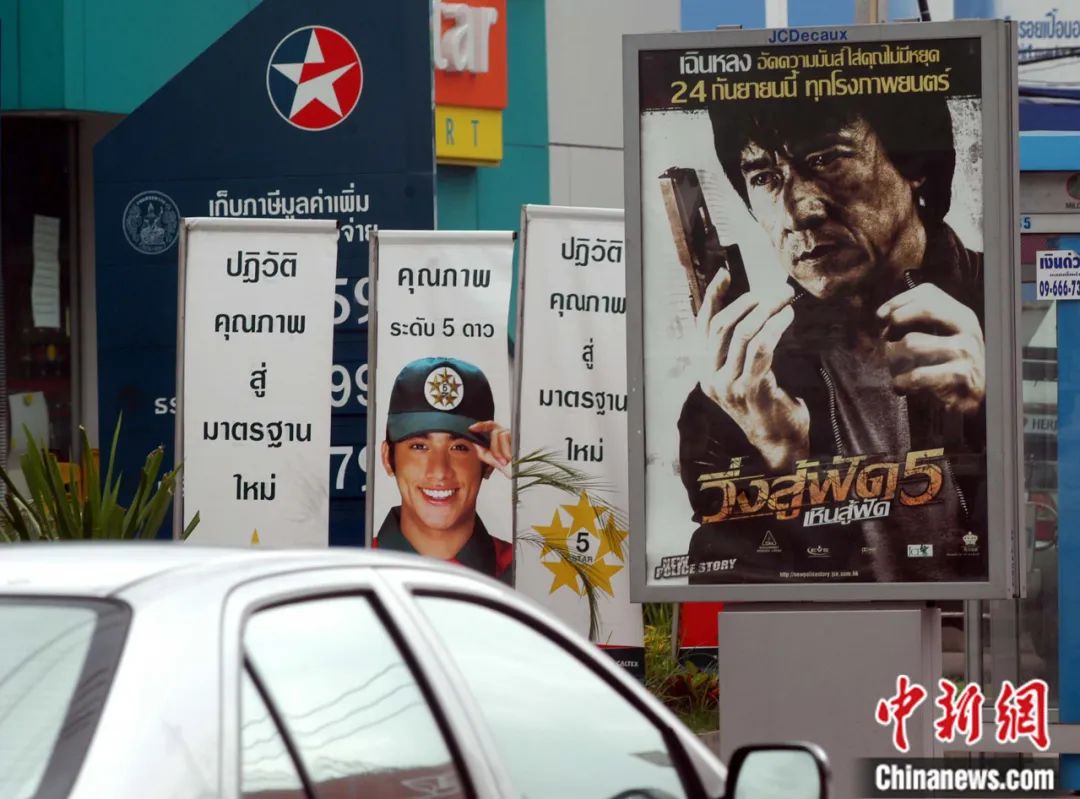 2004年,泰国曼谷主要街道上张贴的成龙主演电影《新警察故事》宣传海报。张宇 摄