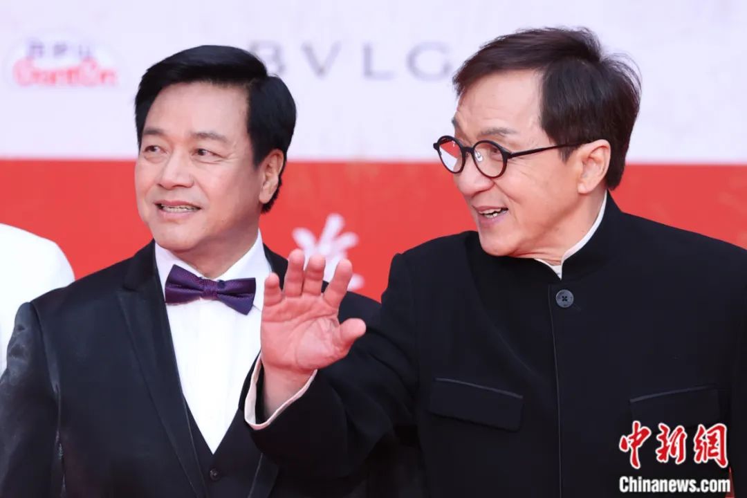 2023年4月,成龙(右)、唐季礼亮相第十三届北京国际电影节开幕红毯。蒋启明 摄