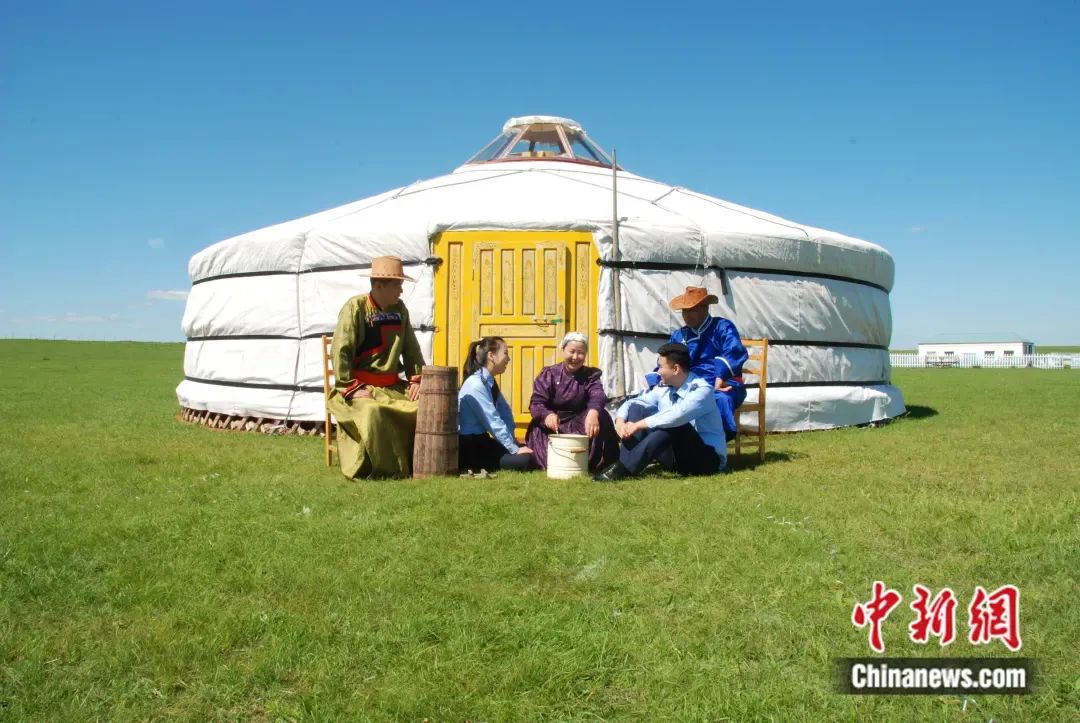 夏天,牧民在蒙古包外制作传统酸奶。 鄂温克族自治旗宣传部供图