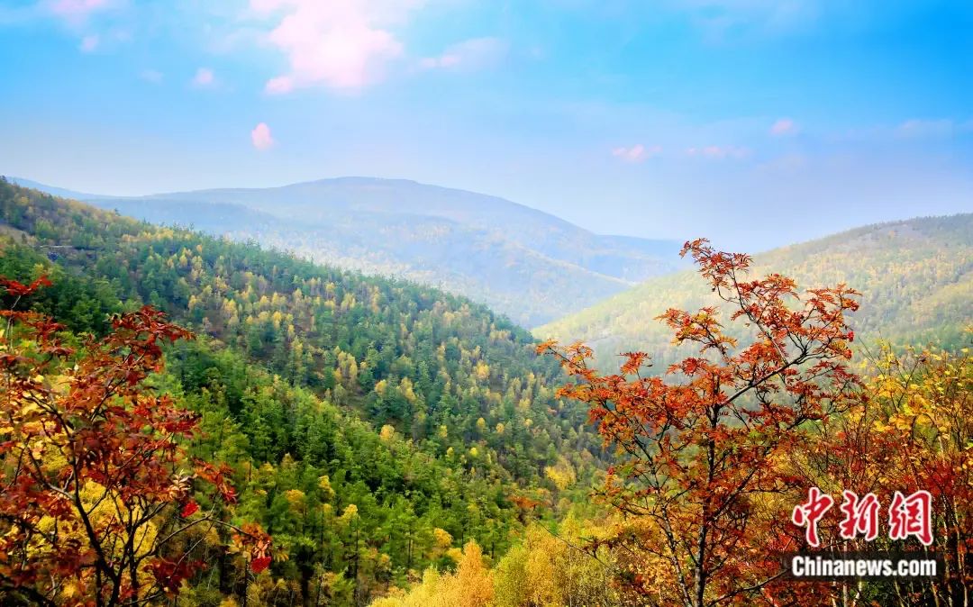 秋天,山岭间层岭尽染,似打翻调色盘。 内蒙古森工集团供图