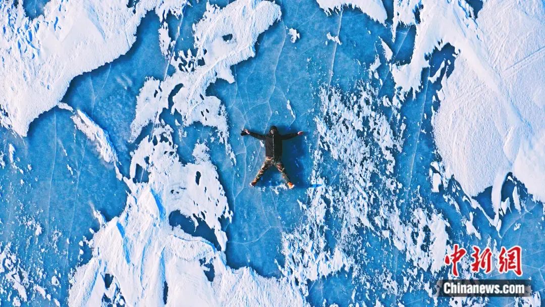 清澈的湖水冰冻后变成了深邃的蓝色,被游客誉为“蓝眼睛”。 田昊霖 摄