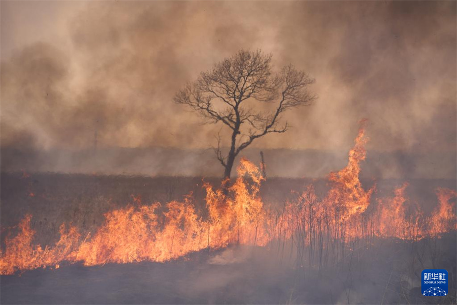 这是3月5日在俄罗斯滨海边疆区南部拍摄的野火现场。新华社发(郭飞洲摄)