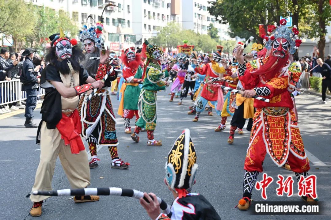 2024年2月14日正月初五,“中华英歌 舞动汕头”春节英歌舞展演巡游活动在广东汕头举行,15支英歌队、近千名“舞者”献上“年味”十足的表演。陈楚红 摄